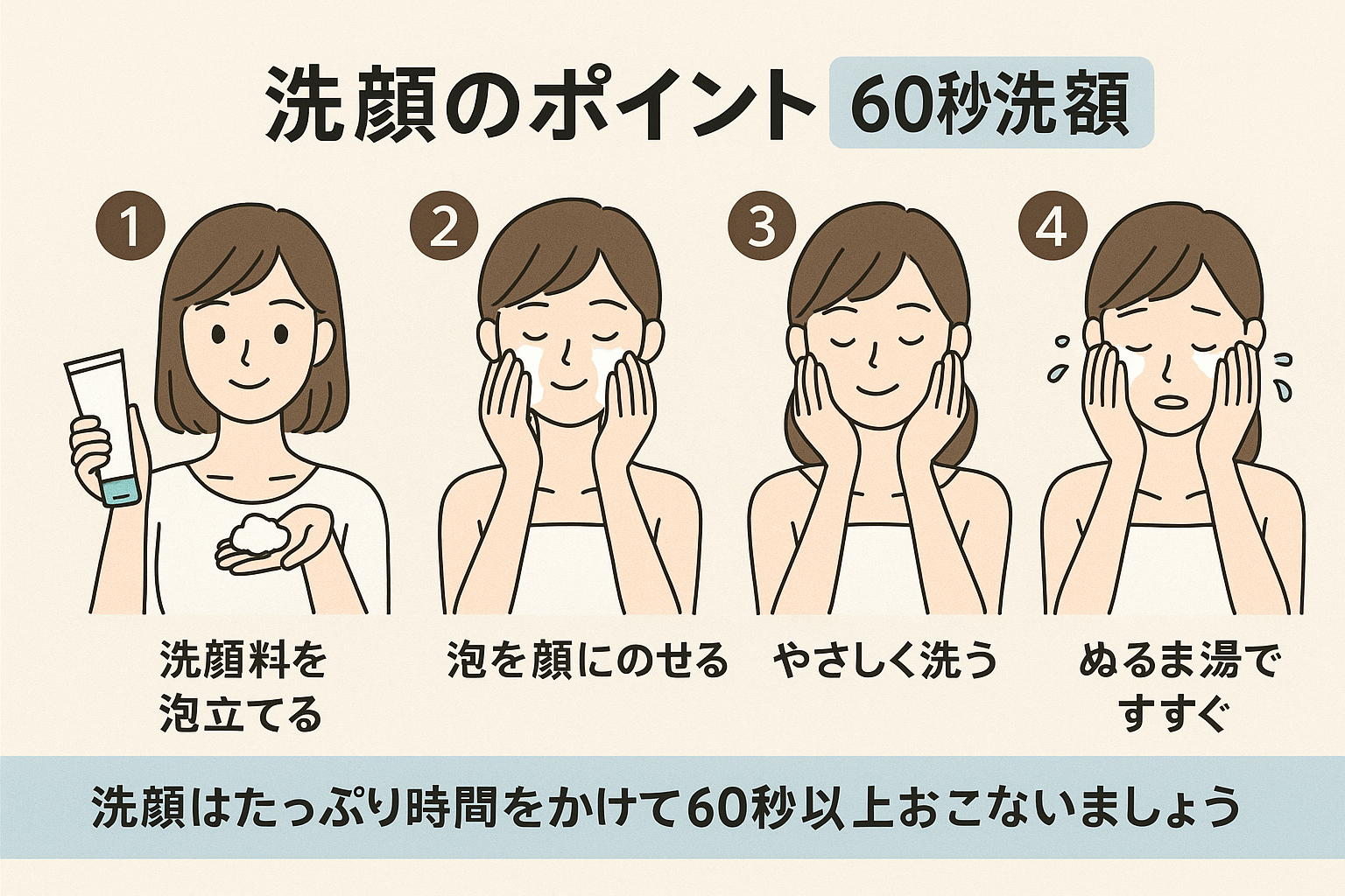 • 乾燥肌:ミルク/クリームでやさしく落とし、低刺激洗顔。ヒアルロン酸→セラミド→クリームで層を作る。