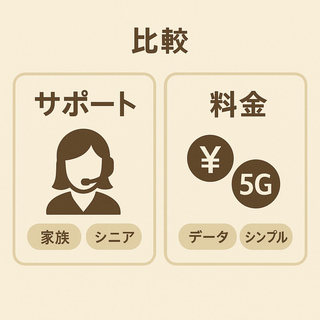 一方で、一般的な格安SIMの中には、よりシンプルな構成と低価格に特化したサービスもある。料金だけでなく、どこまでサポートを求めるか、家族全体で見たときの使いやすさを基準に比較したい。