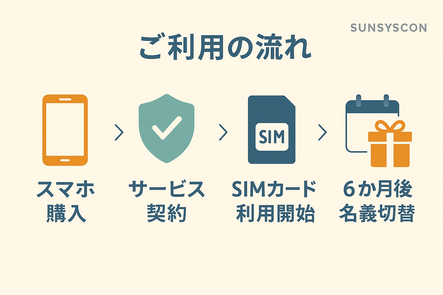 サンシスコンは「レンタル携帯×格安SIM」の仕組みで現実的な選択肢です。契約序盤はレンタル端末と回線でスタートし、6か月目以降は自分名義の回線へ切り替えられるため、将来の名義問題を避けつつ継続利用がしやすいのが特徴です。支払い方法や請求日の柔軟さも合わせ、審査面で不安がある方の生活インフラを支える設計になっています。