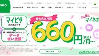 当ページはmineo(マイネオ)のレビュー・比較記事です。提供元サイトではありません。掲載中の料金・割引には適用条件があります。660円からの案内は、対象プランや適用条件を満たす場合の内容です。申し込み前に最新の案内を確認してください。通信...