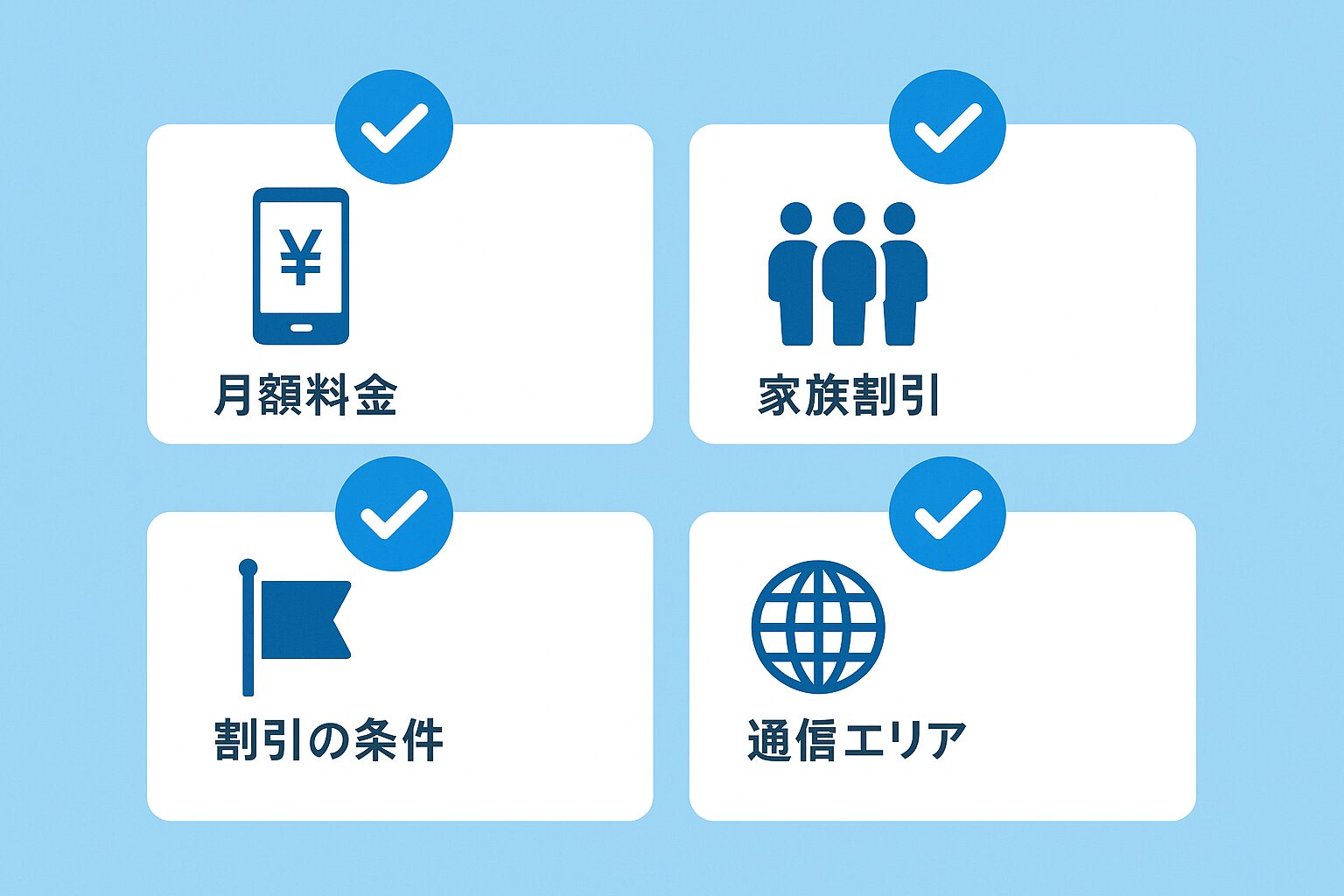 • 家族利用時の追加SIM料金の扱い(2枚目の優遇や上限人数)。