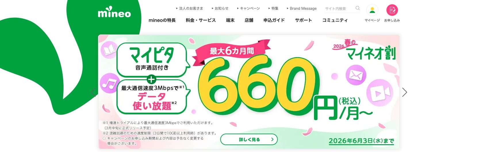 当ページはmineo(マイネオ)のレビュー・比較記事です。提供元サイトではありません。