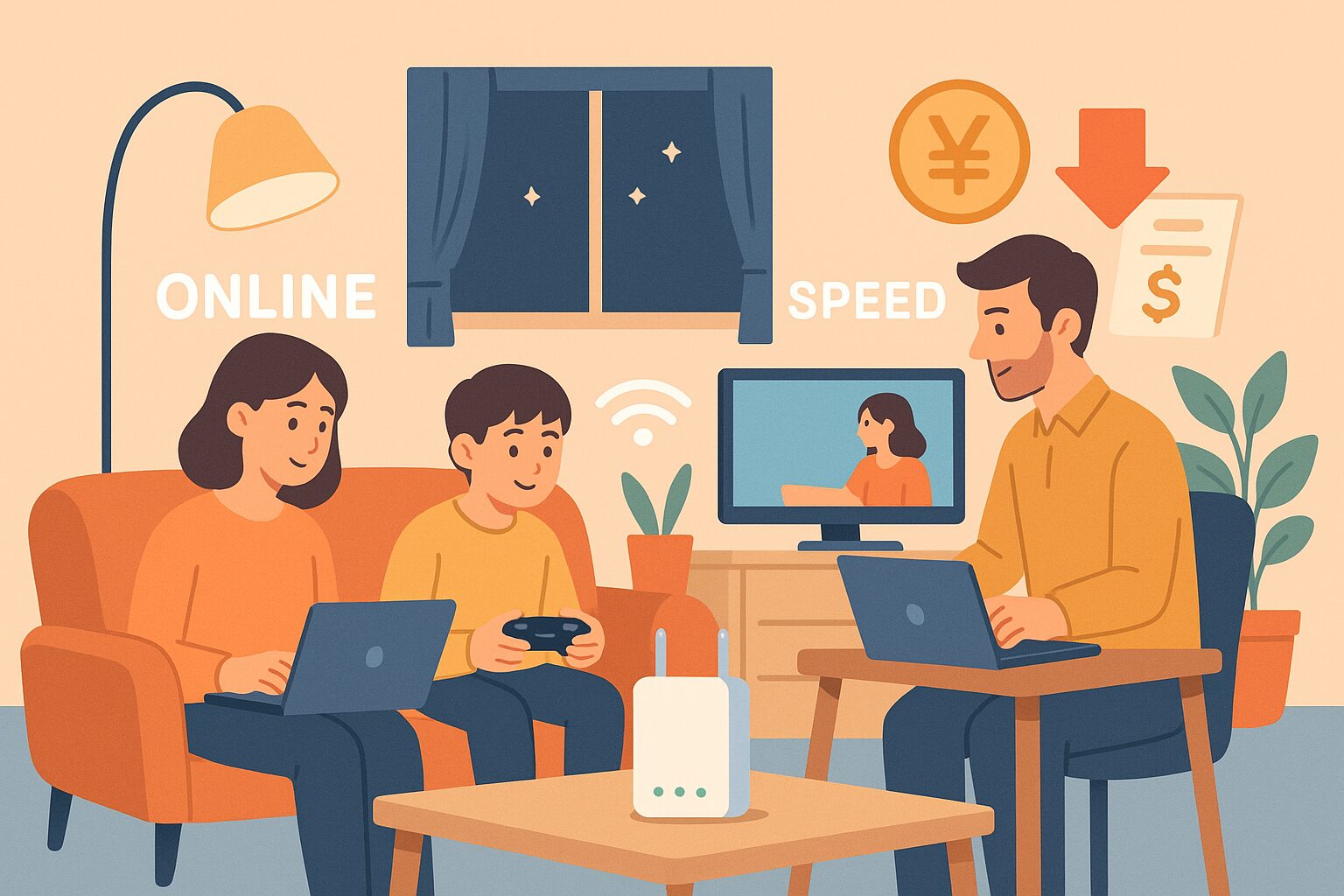 自宅Wi-Fiが安定すると、スマホの動画視聴やアプリ更新もモバイル回線ではなく自宅回線側に逃がしやすくなる。家族全員のギガ消費を抑え、モバイル契約プランの見直しや通信費全体の最適化にもつながりやすい。