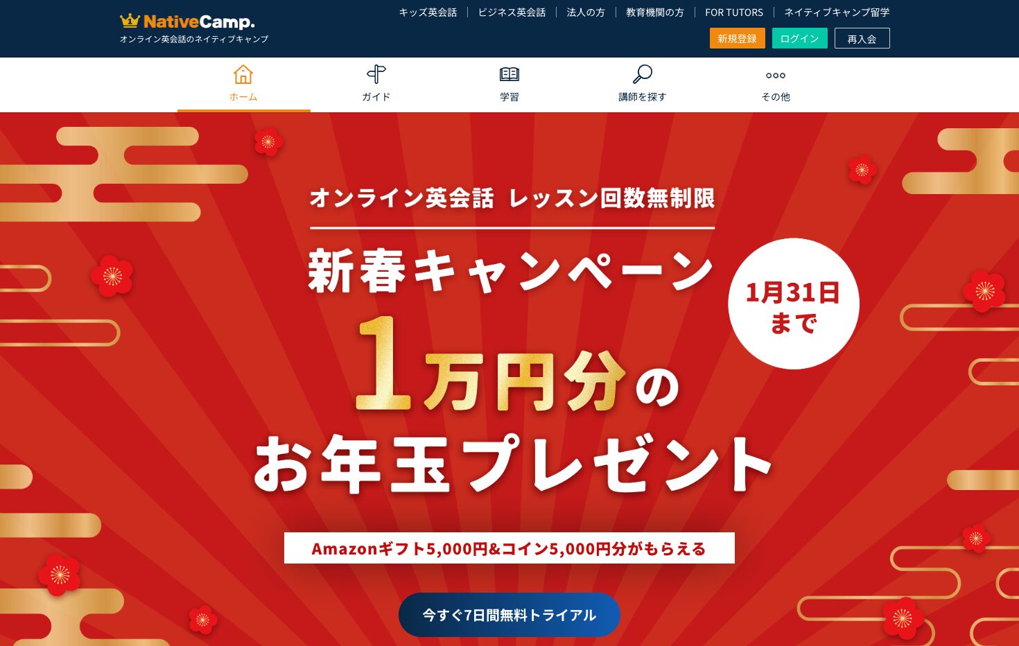 ネイティブキャンプは、オンラインでマンツーマン英会話を受けられる月額制サービスです。