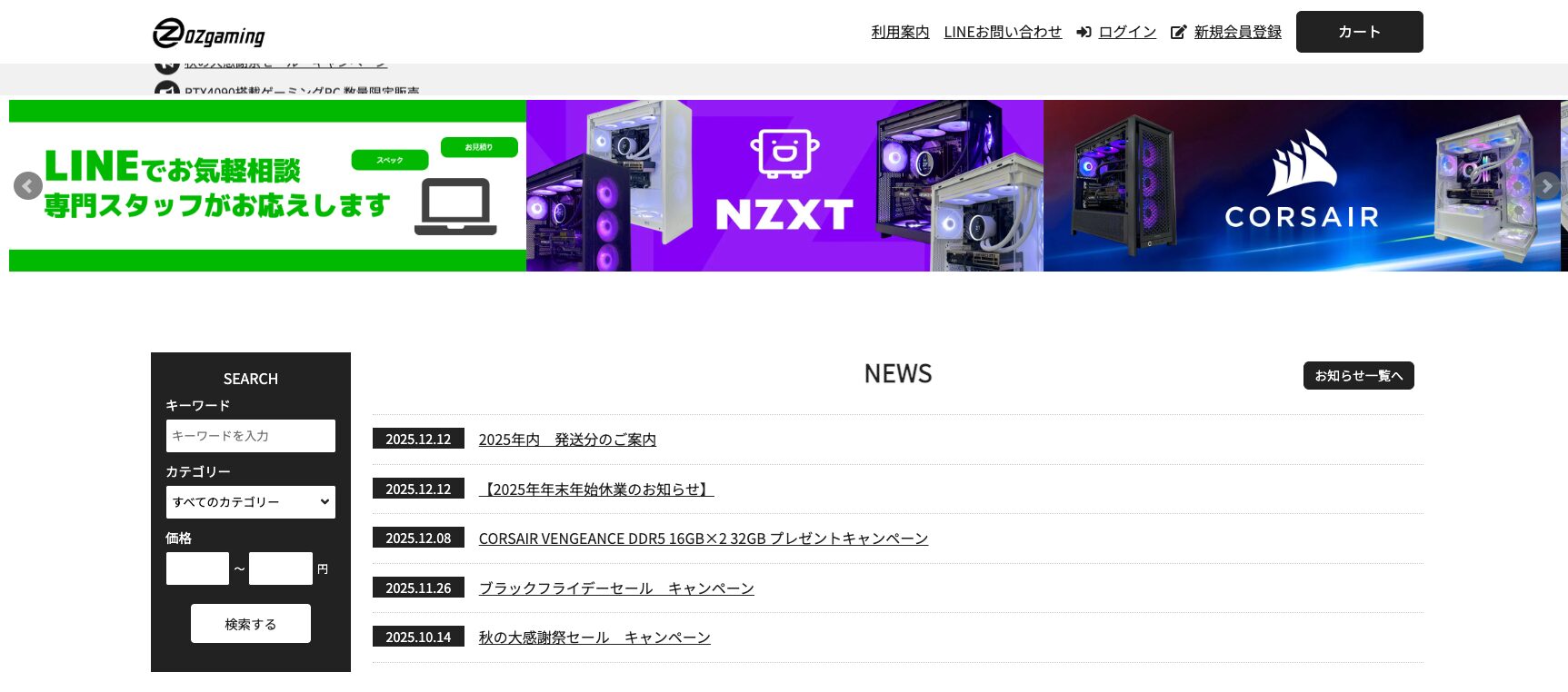 OZgamingは、ゲーミングPCとPCパーツを購入できるショップです。