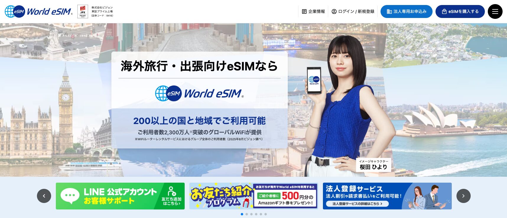 World eSIMは海外渡航向けのeSIMデータ通信サービスです。