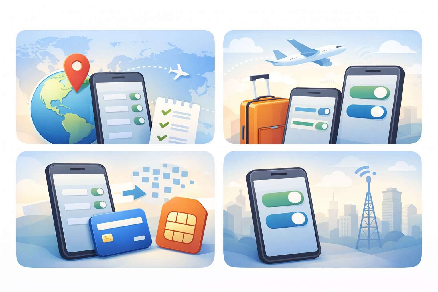 国別ページの「ご利用方法」で流れを確認し、端末ごとの差分は設定コラムで補います。開通タイミングは回線と端末で状態によるため、切替の項目名を先に押さえます。