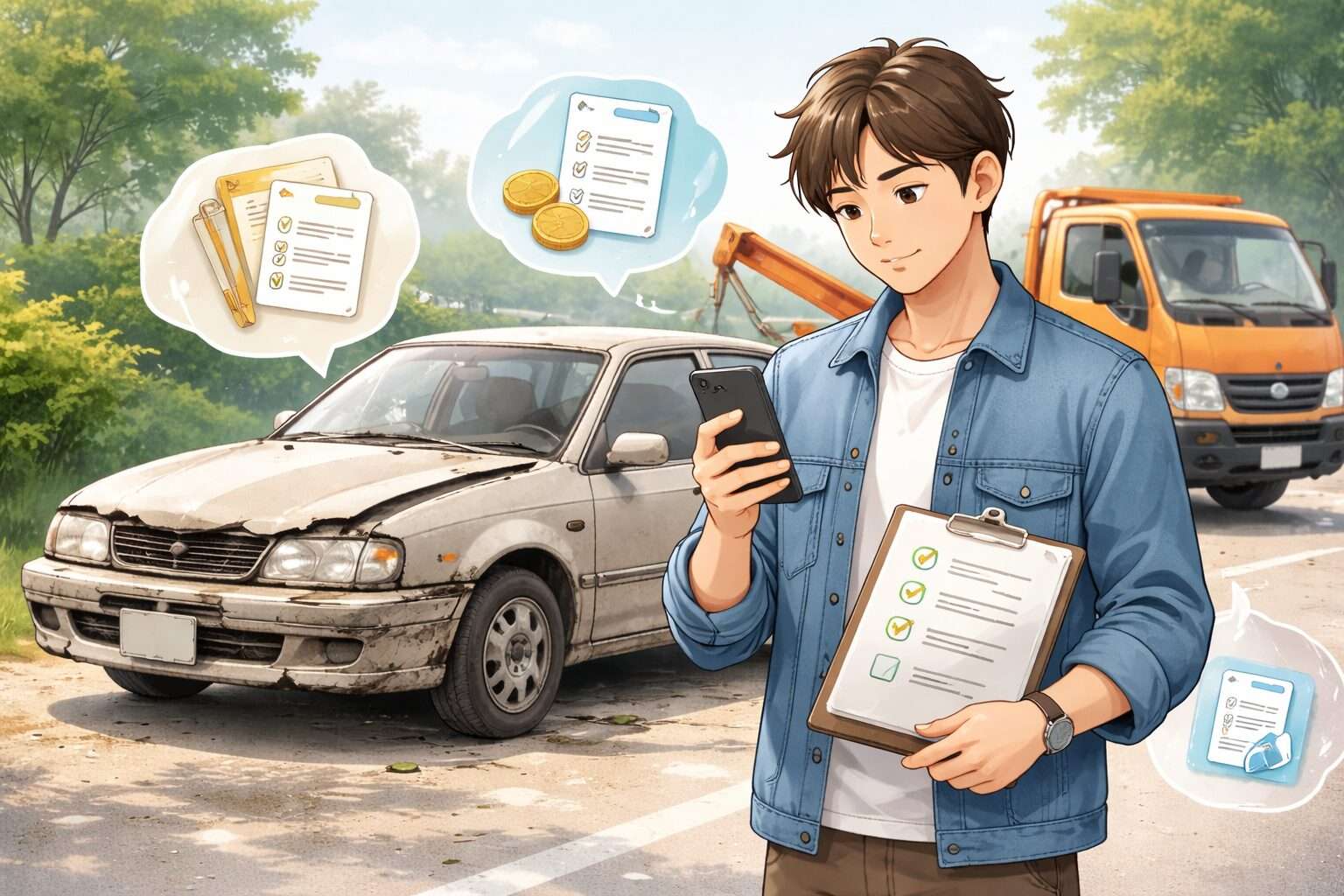 廃車は、日常的に何度も経験する手続きではないため、つい「もう少し調べてからにしよう」と後回しになりがちです。ただ、車検切れの車や動かない車を長く置いたままにすると、保管場所の問題や気持ちの負担が残りやすく、手続きの準備も進みにくくなります。だからこそ大切なのは、最初から完璧に理解しようとすることではなく、まず0円の対象範囲、必要書類、引取り条件といった基本情報を順番に確認することです。