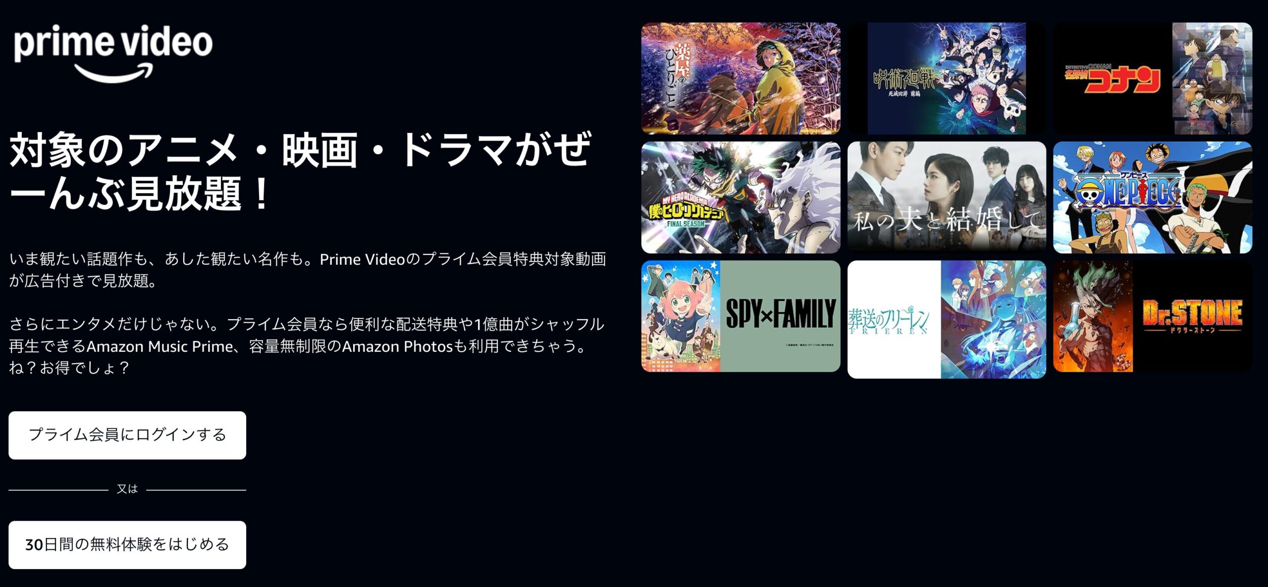 Amazon Prime Video(アマゾンプライムビデオ)は、見放題で始めて、足りなければ追加サブスクやレンタル・購入へ広げられるので、自分に合う範囲を探りやすいサービスです。動画だけでなく、会員特典も含めて日常全体で価値を判断しやすいのも魅力です。